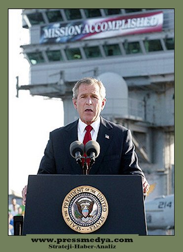 ABD Başkanı George W. Bush, Mayıs 2003 tarihinde USS Abraham Lincoln uçak gemisinde "Görev Tamamlandı" yazılı pankartın önünde zafer konuşması yaparken, ABD'yi bekleyen direniş tehlikesinden habersizdi.