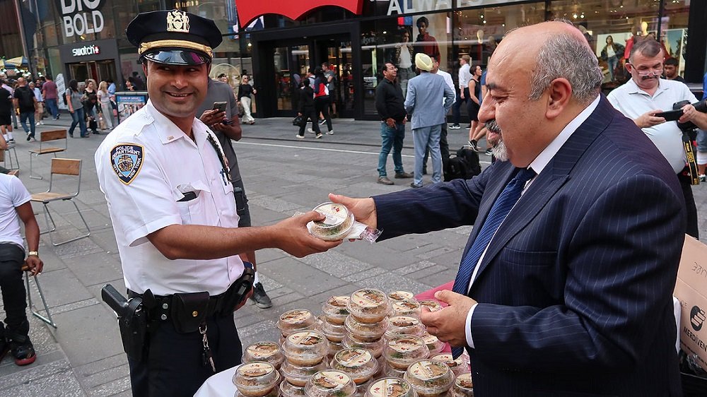 New York'un sayılı mekanlarından Ali Baba Restoran tarafından Times Meydanı'nın en işlek noktalarından birine kurulan masaya dizilen aşurelere, meydandaki Amerikalılar, turistler ve bölgede görev yapan New York polisi büyük ilgi gösterdi.