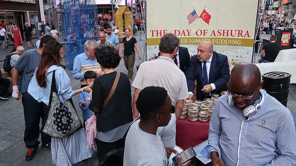 Türkiye'nin New York Başkonsolosluğu tarafından "Aşure Günü-The Day of Ashura" adı altında organize edilen etkinlikte, kentin en meşhur turistik alanlarından Times Meydanı'nda aşure dağıtıldı.