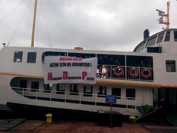 HDP üyesi bir grup, IŞİD saldırısı altındaki Kobani'ye destek vermek için Beşiktaş-Kadıköy arasında sefer yapan vapuru işgal etti.